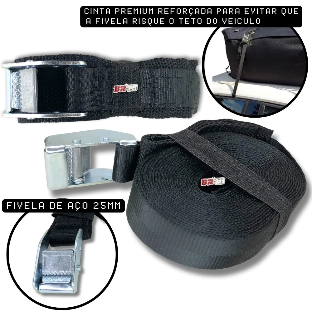 Par de Cintas premium de alta categoria projetada para transporte de diversos objetos nos mais variados tipos de suporte: Rack, caçamba, teto do carro (Aconselhamos que verifique o peso suportado pelo teto do veículo em todos os tipos de suporte) e etc;