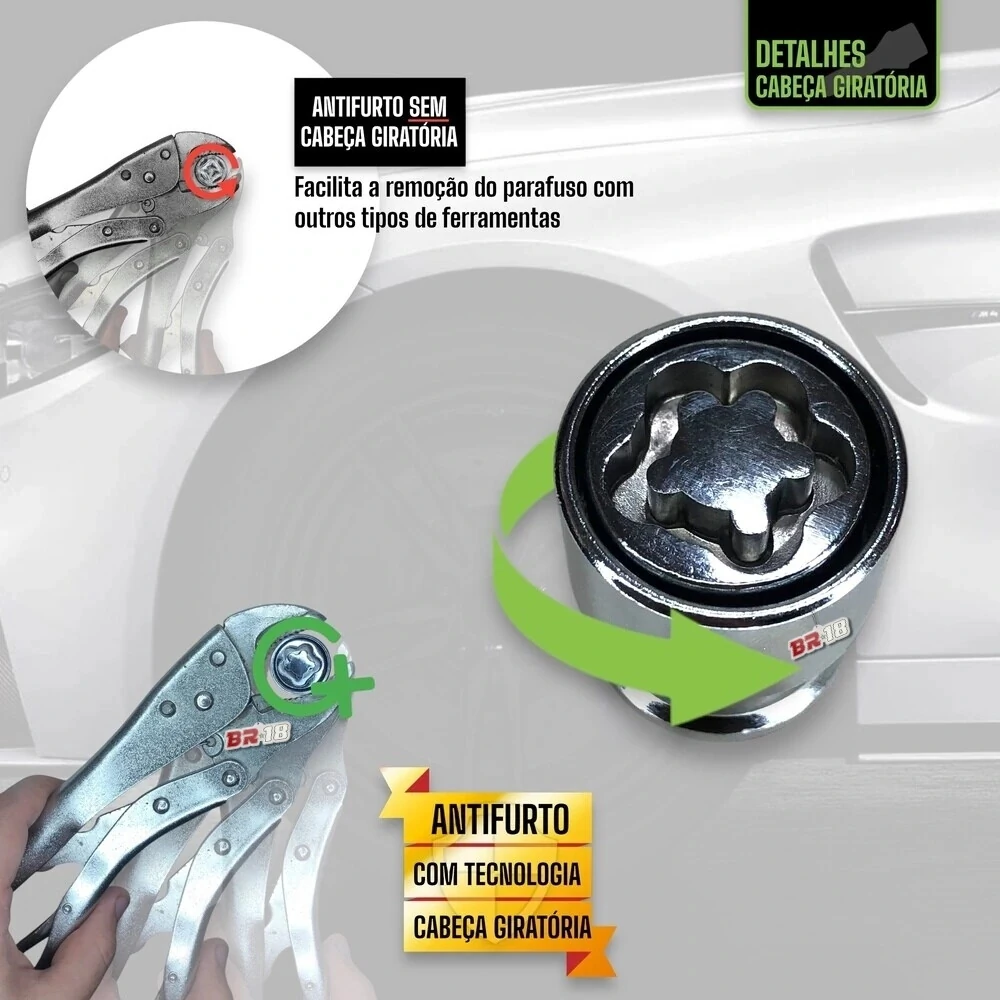 Kit Porca Antifurto com Cabeça Giratória Guardian