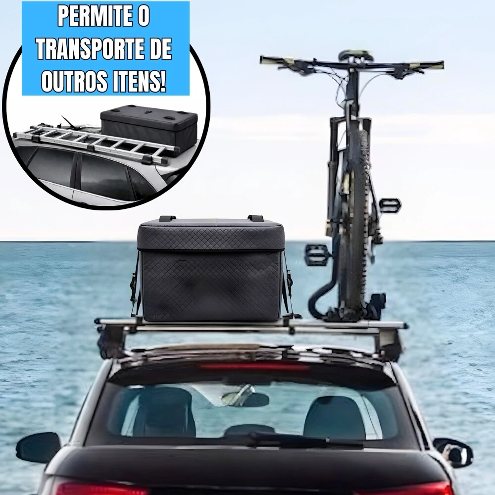EXCLUSIVO : Seu formato compacto ocupa aproximadamente metade do teto do veículo, permitindo o transporte SIMULTÂNEO de outros itens como bicicletas, escadas, pranchas e equipamentos diversos!